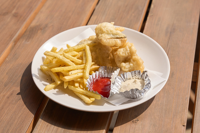 海岸沿いR134の滑川交差点を左折して、橋を渉とすぐ海側に目印の旗が見えます。
